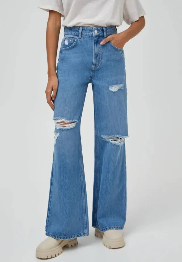 Широкие джинсы уже давно потеснили всеми любимые скинни и есть в гардеробе практически каждой девушки. А теперь на модную арену вышли модели в стиле 70-х годов: слегка широкие, расклешенные книзу, с высокой посадкой.
