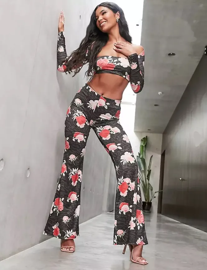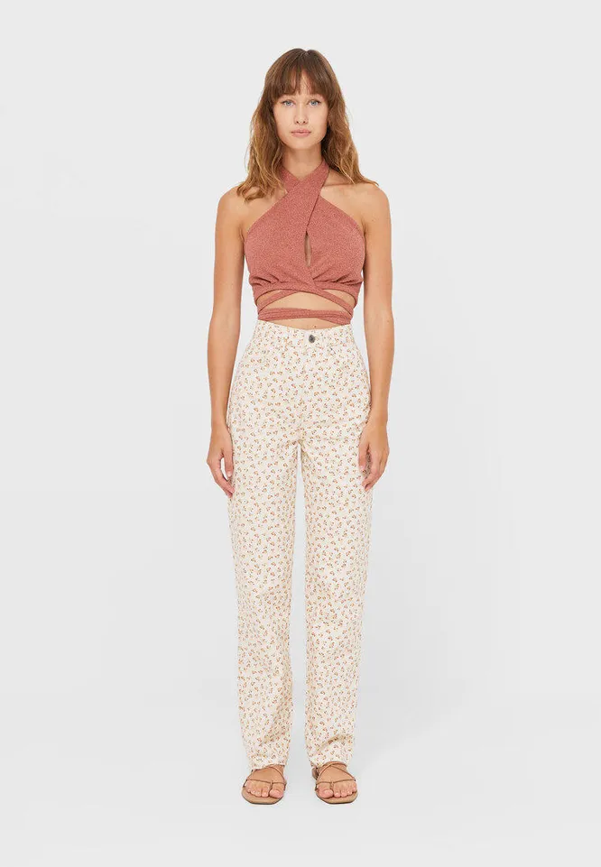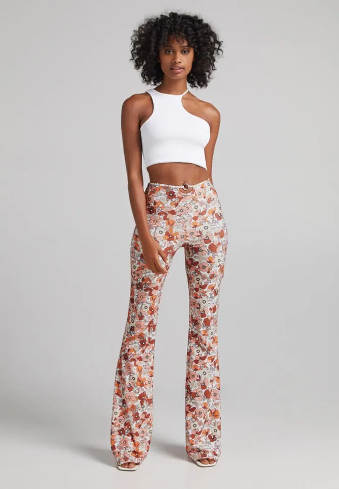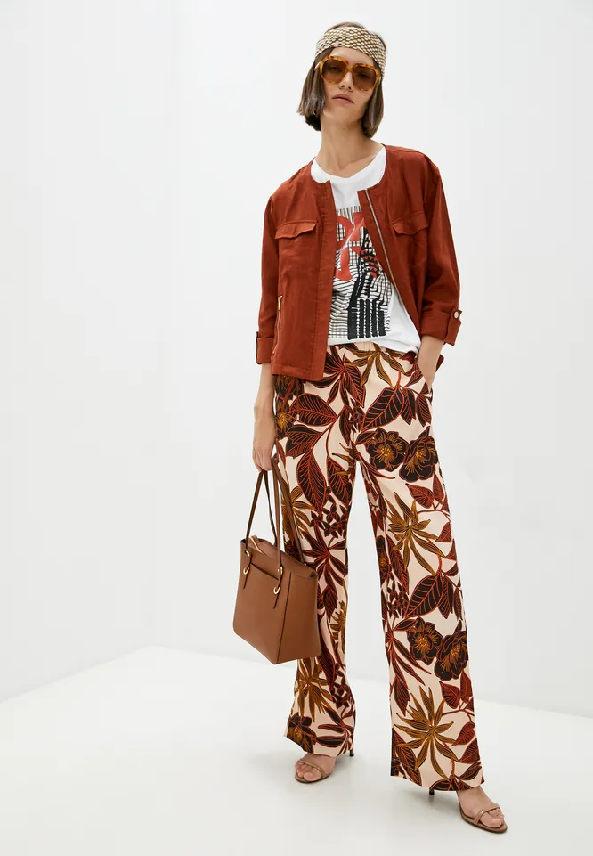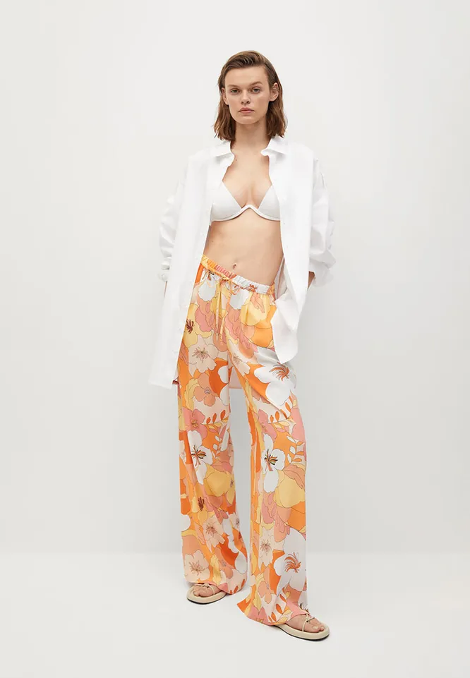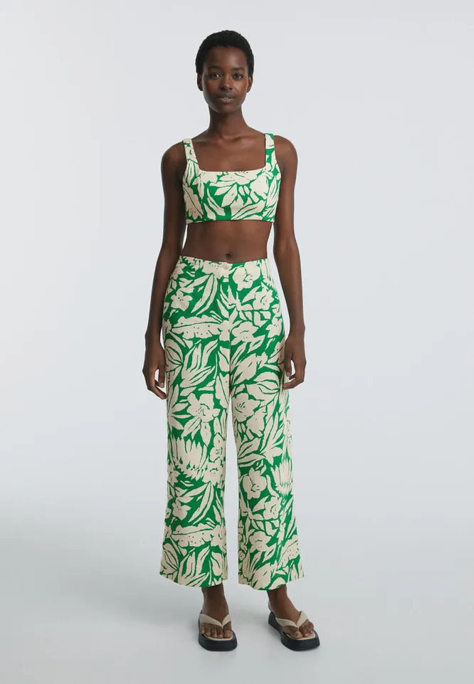 Если хочешь что-то более элегантное и нейтральное, присмотрись к брюкам с ненавязчивыми цветочными паттернами. Их предлагаем носить с расслабленными шелковыми блузами или оверсайз-рубашками.