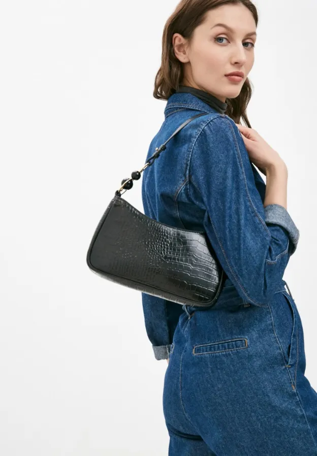 Тем, кто особенно ценит качество и стильный дизайн, стоит обратить внимание на сумку из натуральной кожи, декорированную крупными бусинами.