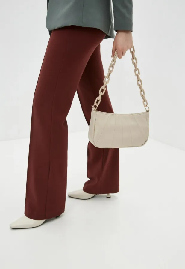 Фактурная сумка со сборками идеально впишется в монохромный образ в оттенках бежевого.