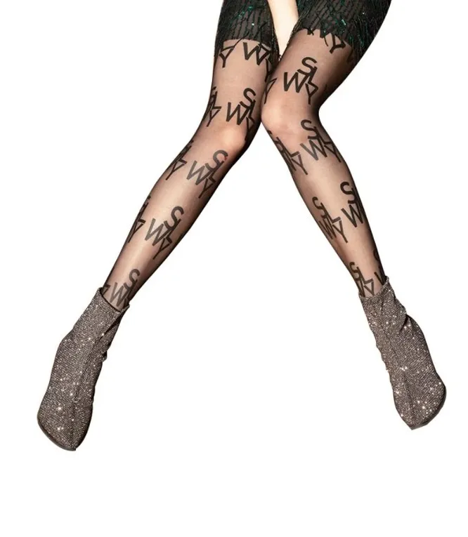 Интересно смотрятся колготки с надписями и буквами. С ними даже маленькое черное платье заиграет по-новому.