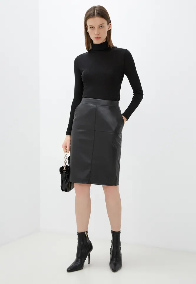 Среди модных тенденций также есть юбка-карандаш из кожи черного цвета. Можно составить множество модных луков с кожаной юбкой-карандаш на любой случай. Например, в офисе она будет уместно смотреться с классической рубашкой, черными колготками и аккуратной обувью в тон. На вечеринке – с туфлями-лодочками и блузой с объемными рукавами.