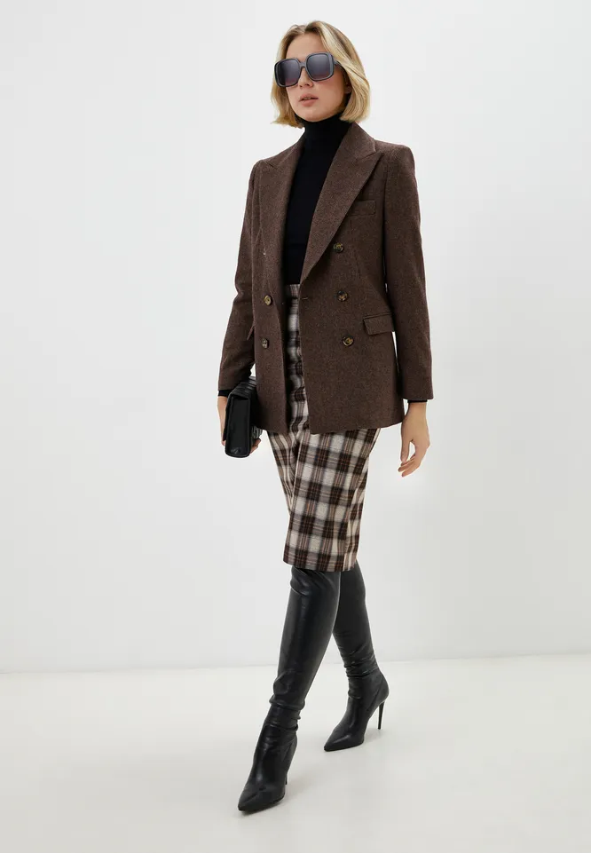 Универсальная модель для деловых и повседневных аутфитов – узкая юбка в клетку. в офис предлагаем ее носить с блузой аскот, удлиненным жакетом и высокими сапогами с присборенным голенищем. Создать модный лук с юбкой-карандаш для будней поможет свитер фактурной вязки или светлая базовая водолазка в паре с объемным кардиганом.
