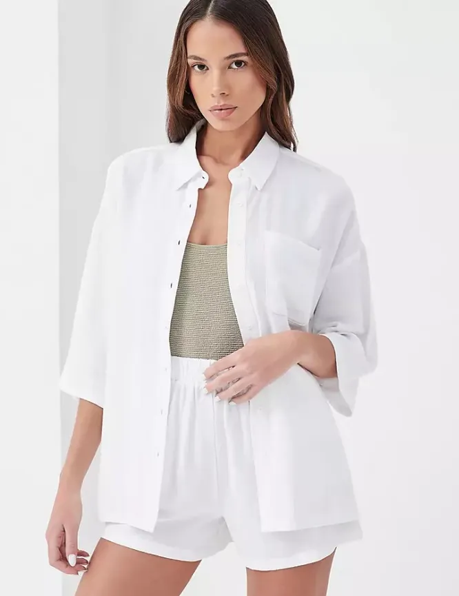 На каждый день идеальным выбором станет свободная рубашка с коротким рукавом. Можно носить ее с любыми шортами или юбками, джинсами и летними брюками. Если хочешь создать более сложный образ, надевай под рубашку топ или браллет.