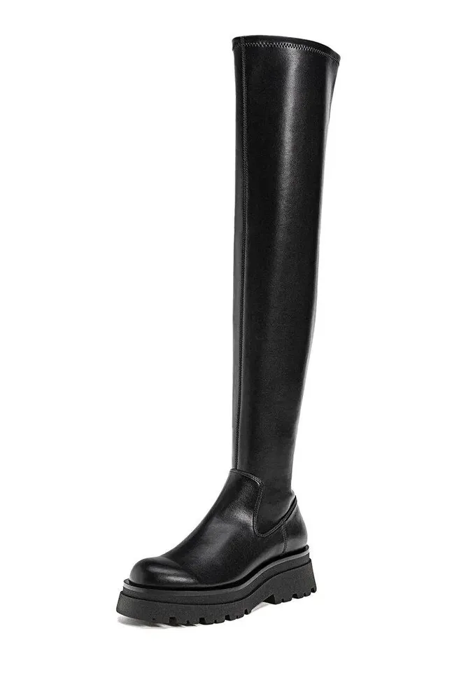 Толстая подошва, блочный каблук и длина выше колена — вот основные причины, почему тебе стоит включить эти сапоги в список избранного.