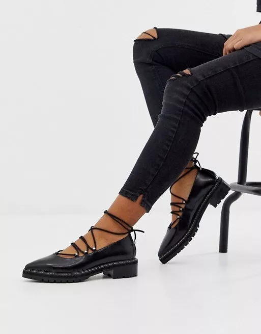 Выбирай туфли, дополненные всевозможными завязками, шнурками, веревками. Они могут как располагаться в районе подъема, так и обвиваться вокруг щиколотки. Особенно популярными будут модели удобные модели на невысоком каблуке.