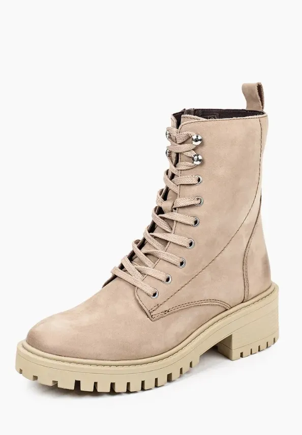 Еще один хит – высокие ботинки на шнуровке с тракторной подошвой. Актуальны как модели в черном цвете, так и варианты в белом, бежевом, бордовом, хаки. Они подходят под абсолютно любой наряд, будь то базовое трикотажное платье, джинсы и свитер или блуза с плиссированной юбкой. Ботинки на шнуровке также отлично сочетаются с любой верхней одеждой: от дутых курток до классических пальто.