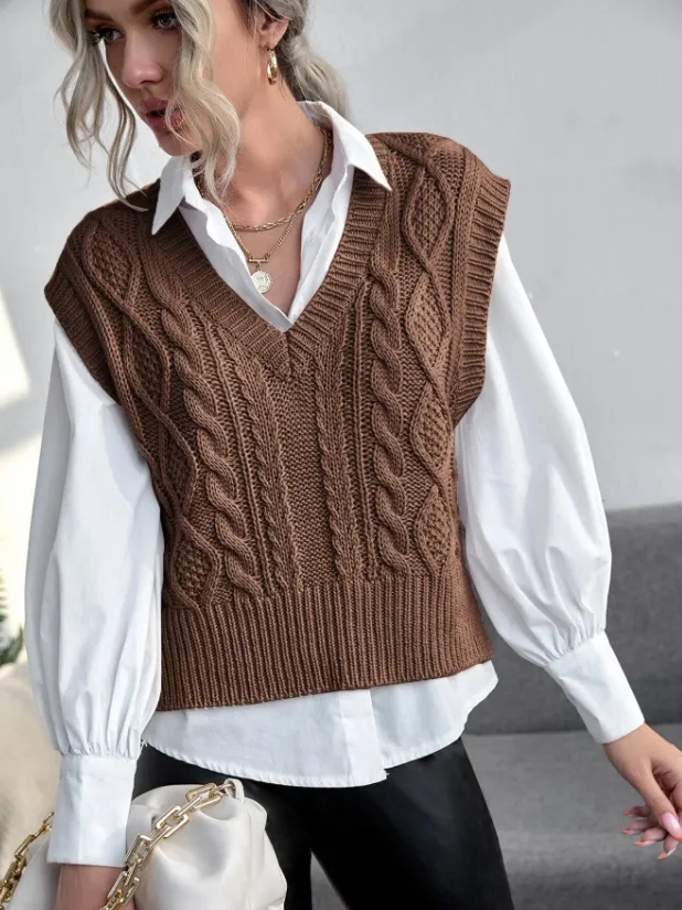 Без трикотажного жилета в этом сезоне тоже не обходится ни один зимний гардероб. Его можно носить поверх рубашек, блуз, футболок, водолазок в сочетании с джинсами, кожаными брюками или мини-юбками.