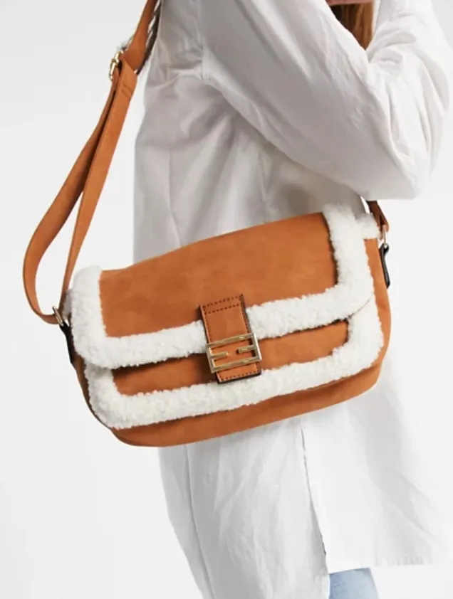 Гармоничным дополнением к зимним аутфитам станет сумка из кожи или замши с отделкой из искусственной овчины. Предлагаем носить ее в тандеме с кожаными дутыми куртками, меховыми пальто, укороченными дубленками, пальто расслабленного кроя.