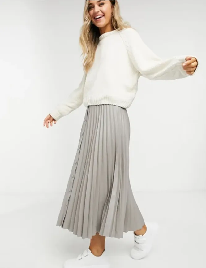 Плиссированная юбка – та вещь, которая сочетается практически с любыми верхами, аксессуарами и обувью. Ее можно носить в тандеме с оверсайз-свитером и ботинками на шнуровке, с ботфортами-чулками и шелковой блузой, с остроносыми ботильонами, водолазкой и удлиненным жакетом.