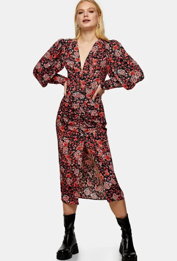 Всегда актуальны платья с цветочным принтом. Обрати внимание на модели из летящего шифона, вискозы, плотного хлопка. Наш фаворит – платье в цветочек с объемными рукавами длины миди. Предлагаем носить его в тандеме с черными грубыми ботинками, небольшой кожаной сумкой через плечо и акцентными серьгами. В нем можно пойти и на вечеринку, и на неформальную встречу, и на модную выставку.