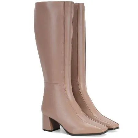 Светло-коричневые высокие сапоги с квадратным носком — идеальное дополнение к твоим теплым юбкам и трикотажным платьям.