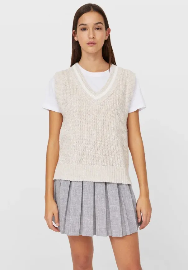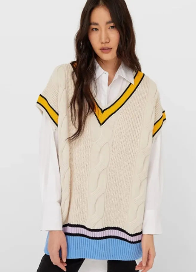 Если в прошлом сезоне на модной арене лидировали кардиганы, то этой зимой их потеснили трикотажные жилеты. В осенне-зимних коллекциях – 2020/21 дизайнеры представили разные модели: от простых вязаных до необычных, ярких моделей с абстрактными принтами. Dior предлагают носить трикотажную безрукавку поверх полупрозрачной рубашки с клетчатой мини-юбкой. Lacoste обыграли жилет с помощью длинной плиссированной юбки, свободной рубашки, бейсболки и кроссовок, а Prada советуют носить хит сезона с трикотажной юбкой и туфлями.