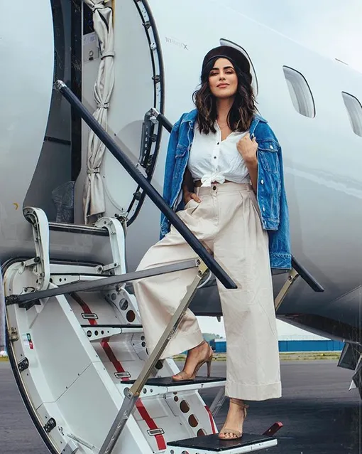 Оптимальное решение для начала сентября – сочетание широких брюк (желательно из легкой и натуральной ткани) с рубашкой, замшевыми босоножками на высоком каблуке и джинсовой курткой.