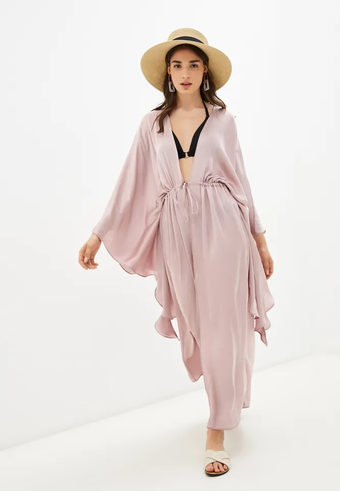 Если любишь струящие ткани и летящие силуэты, присмотрись к этому пляжному платью жемчужного цвета. С ним получится создать женственный романтичный образ.