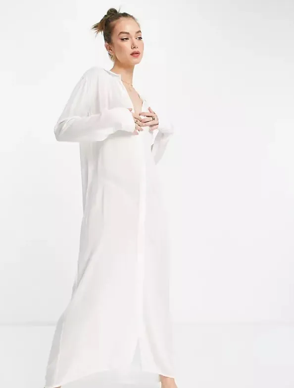 Поклонницам минимализма стоит обратить внимание на длинное платье-рубашку из приятной вискозы. Модель органично смотрится как в пляжных, так и в городских образах.