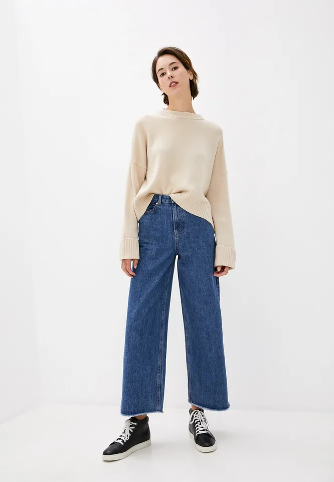 Джемпер с открытой зоной плеч и широкие джинсы
