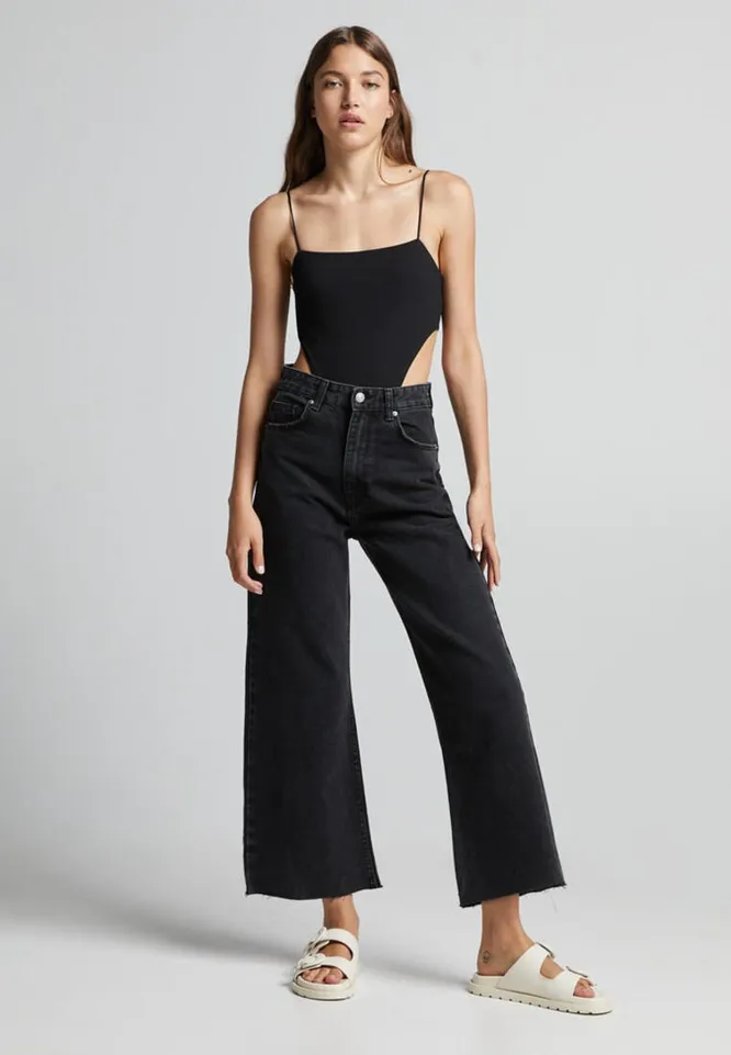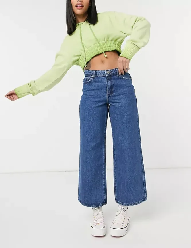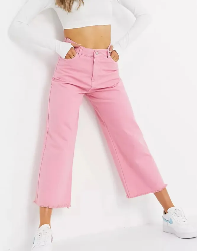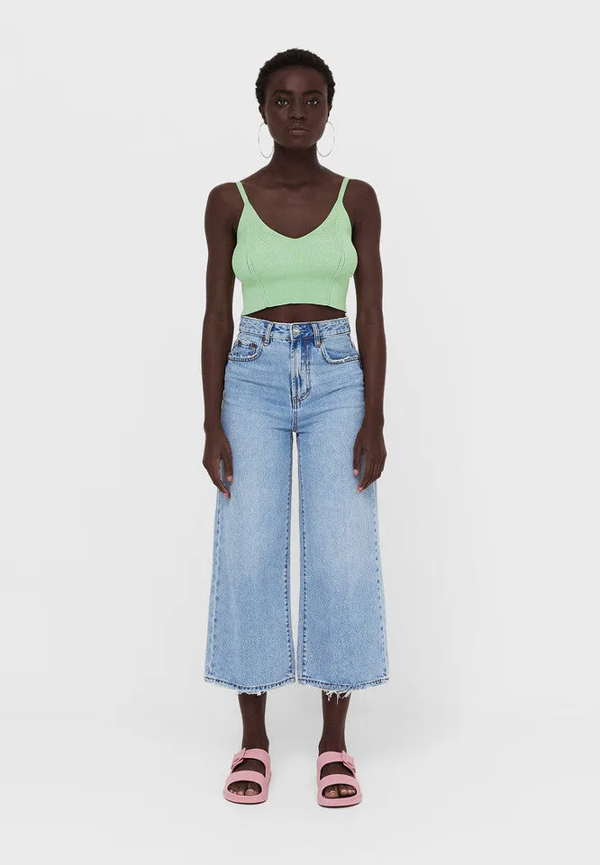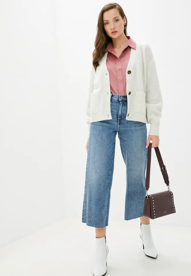 Укороченные широкие джинсы – универсальная базовая вещь в любое время года. Летом советуем выбирать светлые кюлоты, а также модели пастельных оттенков – они гармонично впишутся в жаркие образы.