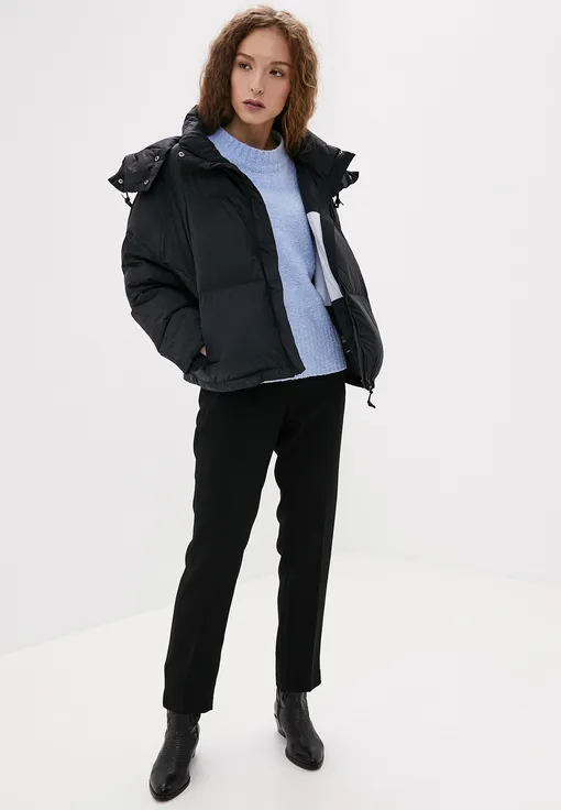 Классическая черная куртка послужит отличной базой на осень и зиму. Модель очень практичная: благодаря тому, что она выполнена из ветрозащитного текстиля с водоотталкивающей пропиткой, ты можешь не бояться промокнуть или замерзнуть в ней. Теплый, надежный вариант на любую погоду.