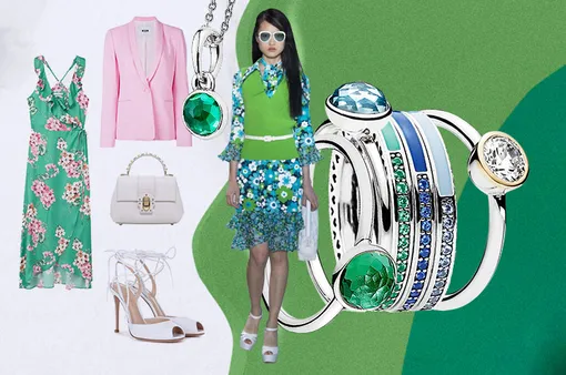 Чтобы «не потеряться» на работе среди «белых воротничков», возьми на заметку подиумные образы – женственное платье «в цветочек» дополни однотонным ярким блейзером или жилетом, а талию подчеркни тонким ремешком. А чтобы твой наряд был еще ярче, дополни его сетом из серебряных колец PANDORA ручной работы, где зелёный хрусталь «подружился» с прозрачным, а благородно-синие камни – с небесно-голубыми.