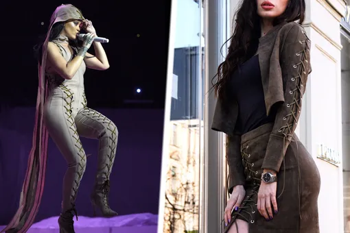 Но будь осторожна и сочетай вещи аккуратно: на тебя и без дополнительных агрессивных аксессуаров все обратят внимание. Под шнуровку надень закрытое чёрное боди и не переборщи с каблуками.