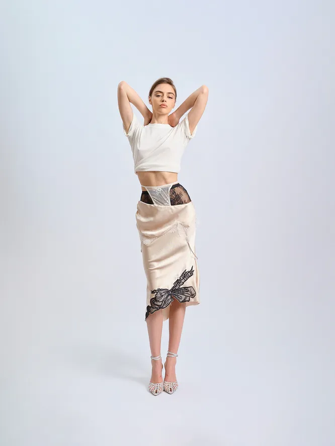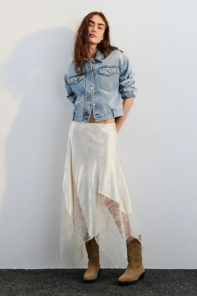 Совершенно не удивимся, если скажешь, что где-то в недрах твоего шкафа спряталась атласная юбка с кружевным подолом. По-английски они называются slip skirts – по аналогии со slip dresses, то есть платьями-комбинациями.