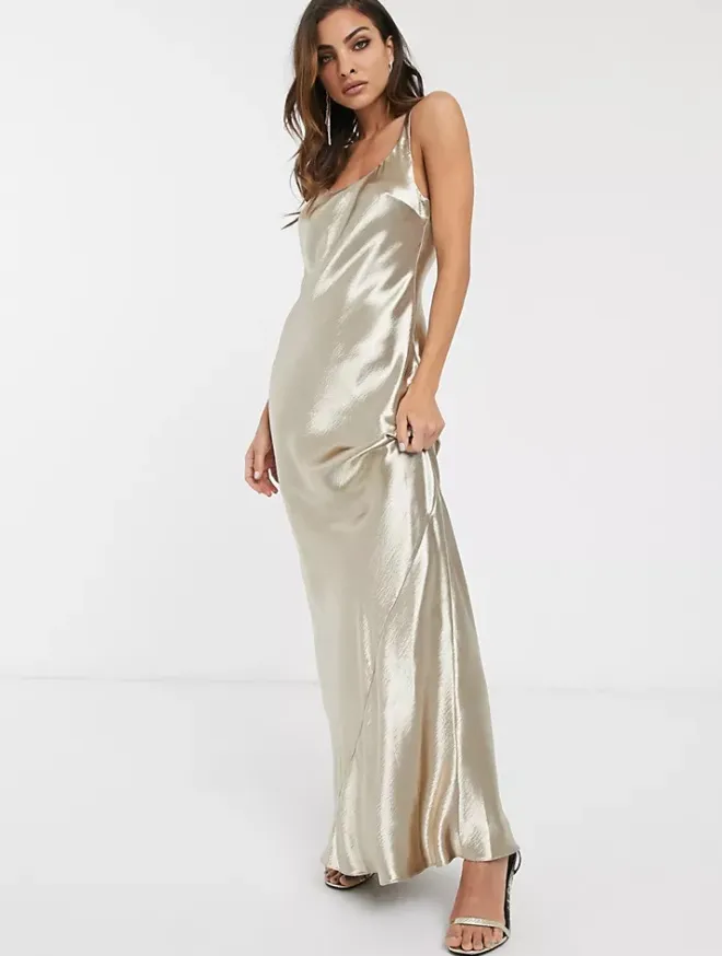 Ищешь что-то сексуальное? Тогда советуем купить вечернее платье-комбинацию в пол кремового цвета. Модель красиво подчеркивает фигуру и вытягивает силуэт. Кроме того, его легко по-разному стилизовать при помощи аксессуаров и обуви. Например, можно дополнить платье в бельевом стиле длинными мерцающими серьгами, фактурным клатчем и босоножками на шпильках или сочетать с жемчужными пусетами и лодочками на kitten heel, если хочется создать более романтичный лук.