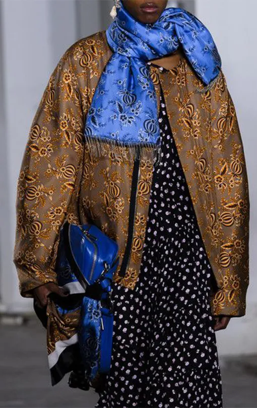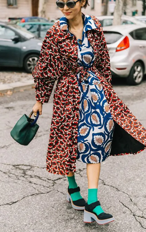 А вот два образа ниже не смотрятся гармоничными не из-за сочетания принтов, а потому что сами принты неудачные (слишком крупные и напоминают фотообои).