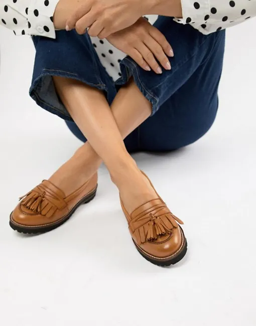 Бежевые лоферы с бахромой смело носи в офис — они отлично сочетаются со строгим костюмом, выполняя роль акцента. Если в течение дня тебе предстоит много встреч и переговоров, эта обувь поможет твоим ногам не устать до конца рабочего дня.