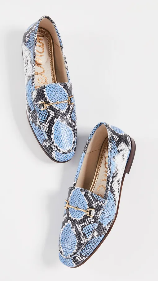 Если хочешь добавить немного перчинки в повседневный образ, эти оригинальные лоферы – настоящая находка. Модель голубого цвета со змеиным принтом гармонично смотрится с рваными джинсами скинни и рубашкой oversize-кроя.