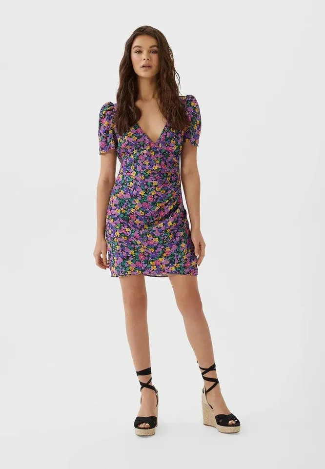 Идеальная посадка, комфортная длина, легкая, струящаяся ткань, модная расцветка, глубокий вырез, пышные рукава и цветочный принт — в этой модели сочетается все, что нужно для полного счастья этим летом. Носи ее с яркими мюлями на каблучке и дополняй наряд модной сумочкой.