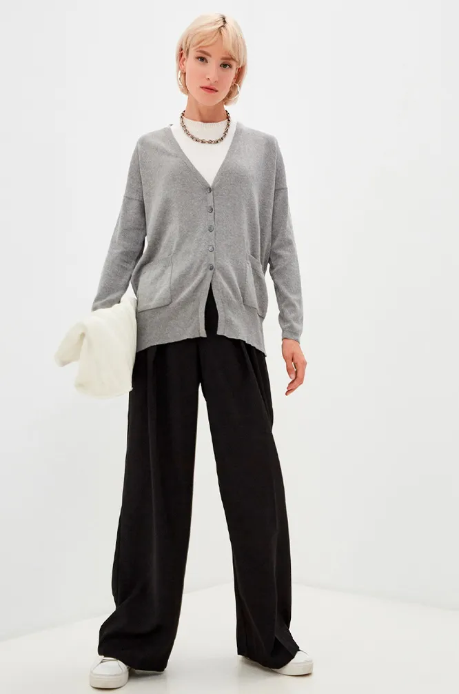 Брюки с широкими, длинными штанинами помогут создать дерзкий, расслабленный образ. Чтобы наряд смотрелся гармонично, не аккуратничай: сочетай брюки с объемной рубашкой, небрежно заправив ее за пояс, дополняй объемными кардиганами и куртками нараспашку, а чтобы подчеркнуть характер сочетаний, используй цепи и массивную обувь.