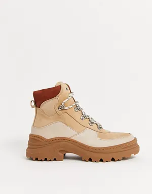 Одним из главных трендов этой зимы стала светлая обувь — особенно актуальны белые и бежевые модели. Эти ботинки выполнены сразу в трех оттенках — молочном, песочном и коричневом — благодаря чему смотрятся ярко и необычно. Стоит отметить очень удобную подошву, ходить на которой — одно удовольствие.
