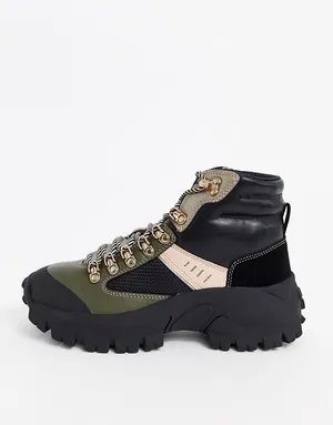 Ботинки в стиле милитари станут отличной базой повседневного гардероба. Они хорошо смотрятся как с простыми джинсами, так и с более классической одеждой. Оттенок хаки сегодня очень актуален и может послужить оригинальной альтернативой черному — он также отличается универсальностью и практичностью.