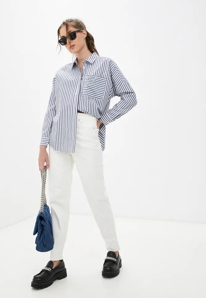 В тренде по-прежнему и расклешенные джинсы. Обрати внимание на укороченные модели, а также на модели, расклешенные от колена. В сочетании с верхом с объемными рукавами они создадут выразительный силуэт. Из обуви выбирай ботильоны и туфли на блочном каблуке с квадратным мысом, кроссовки в винтажном стиле, обувь на платформе.