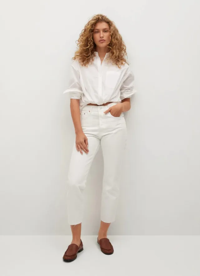 Вместо скинни предлагаем носить классические прямые джинсы или «бананы». Лучше выбирать модели с высокой талией, чтобы визуально удлинить ноги и гармонизировать пропорции силуэта. Это универсальная модель, которая подходит любому типу фигуры.