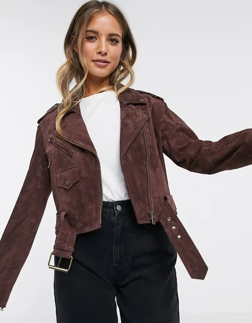 Не менее эффектно выглядят куртки из мягкой замши. Нам пришлась по вкусу модель в оттенке шоколад, которая будет стильно смотреться как с синими джинсами и казаками на каждый день, так и с воздушным платье в цветочек и ботильонами kitten heels на вечер.
