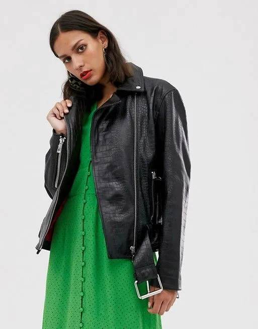 Хочешь выглядеть дерзко и стильно этой весной, тогда выбирай оверсайз-куртку с эффектом крокодиловой кожи. Самая модная фактура этой весны, актуальный крой, асимметричная молния и широкий пояс точно не дадут тебе остаться незамеченной.