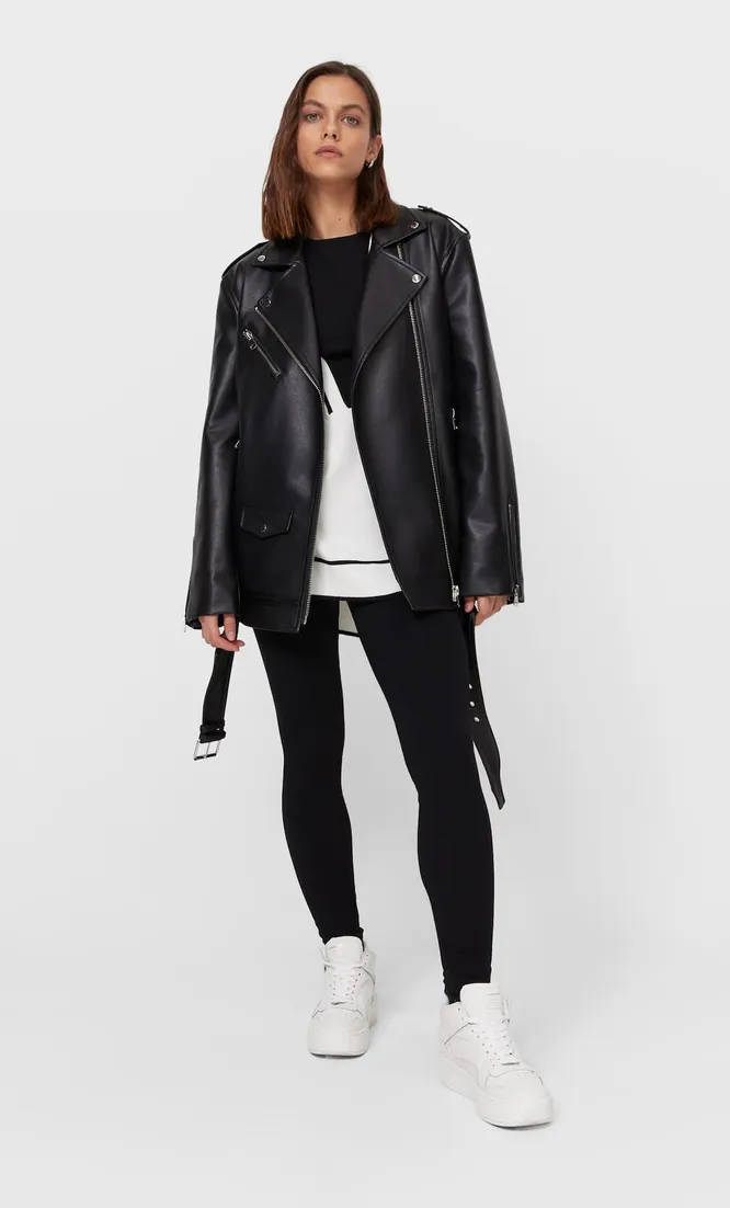 Отличный вариант для поклонниц оверсайза. Объемная байкерская куртка, словно позаимствованная у бойфренда, сделает образ более дерзким и брутальным. Отличный вариант для тех, кто хочет добавить характера в свой гардероб. На фоне массивного верха твоя фигура будет смотреться более хрупкой, а еще ты всегда сможешь надеть такую куртку поверх худи или свитера.