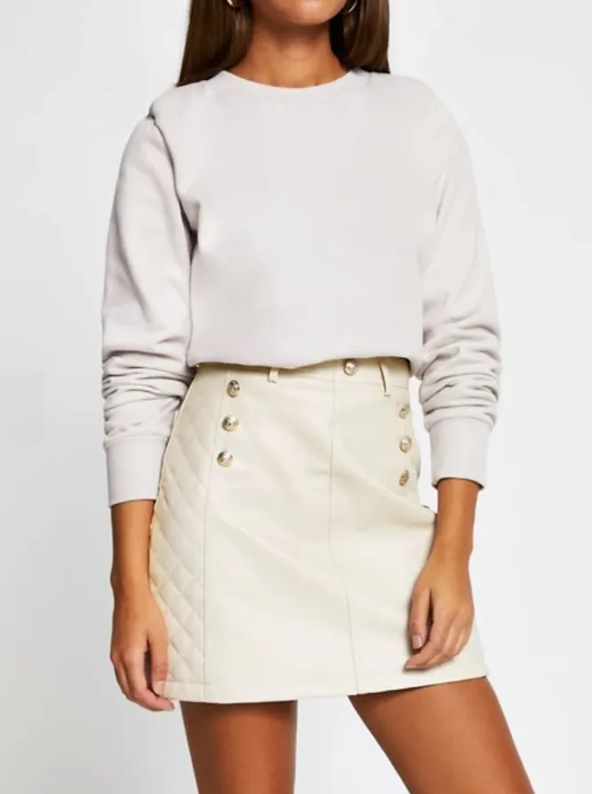 Еще одна универсальная модель, которую легко обыграть, – белая мини-юбка полуприлегающего кроя. Предлагаем составить с ней монохромный лук в благородных оттенках белого и бежевого. Носи ее с плотной водолазкой в рубчик и замшевыми сапогами, если собираешься на свидание, или с кремовой блузкой и светлым жакетом – в офис.