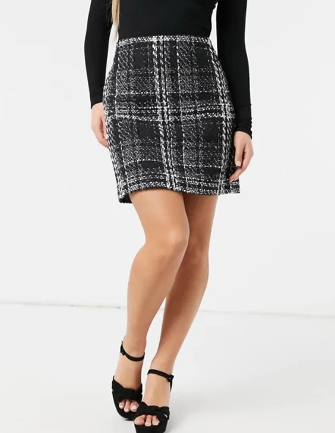 Поклонницам классики понравятся модели из твида или букле. Беспроигрышный вариант – черная мини-юбка в клетку или «гусиную лапку». Она отлично смотрится и с твидовыми жакетами, и классическими пиджаками из костюмной ткани, и с романтичными блузами и строгими рубашками.