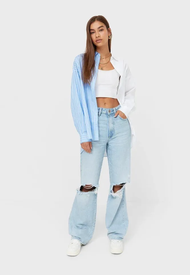 Вспоминаем 90-е и носим строгие, белые рубашки с брюками, джинсами, юбками и шортами-бермудами. Маскулинность, присущая тому времени, снова актуальна — бери на заметку образы Кейт Мосс, Джулии Робертс, Линды Евангелисты и других звезд прошлой эпохи. Приветствуется легкая небрежность — носи рубашку незаправленной, расстегни пару верхних пуговиц и закатай рукава повыше.