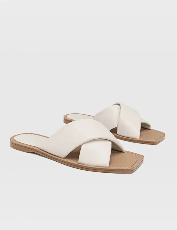 Кремовые шлепки с квадратным мысом станут стильным акцентом в любом, даже самом простом образе.