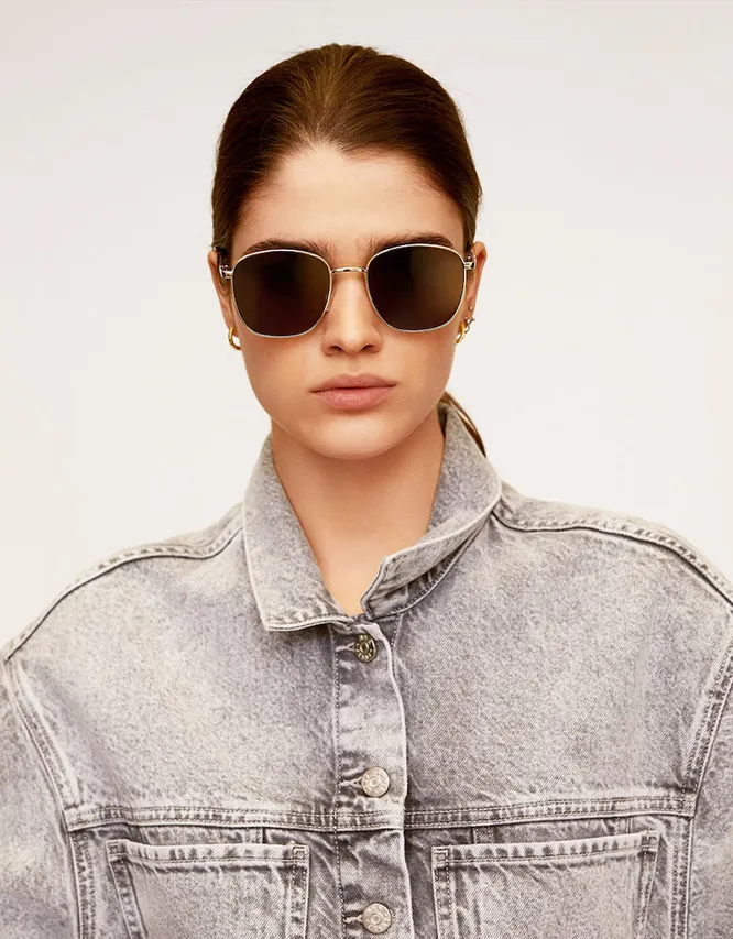 Массивные очки квадратной формы помогут тебе визуально скорректировать лицо — такая оправа делает овал более вытянутым, что особенно на пользу круглолицым девушкам. Темные линзы не только отлично защищают от яркого света, но и придают образу чуть более дерзкий вид.