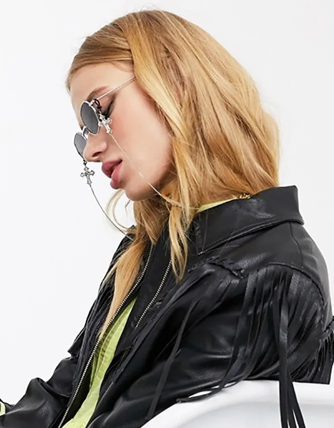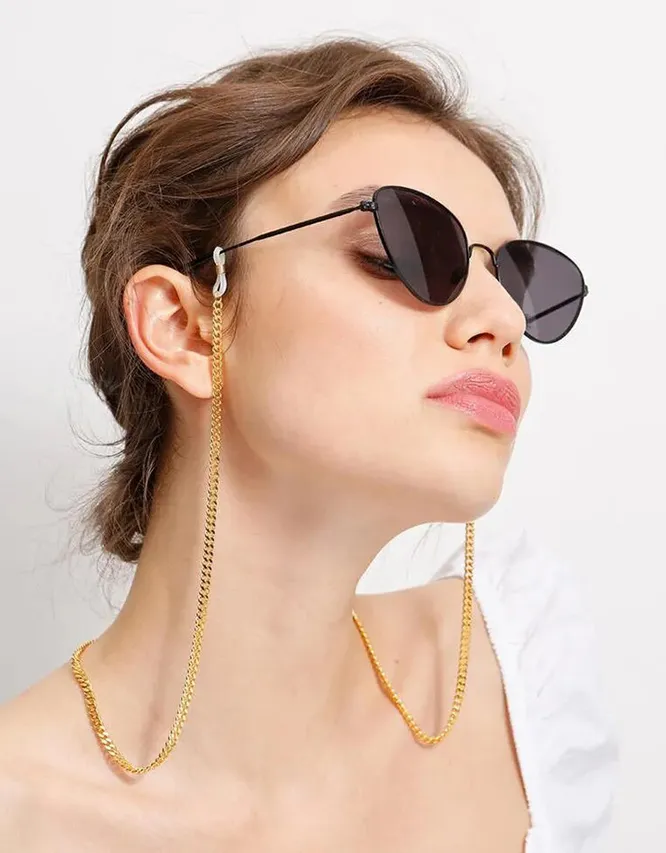 Если ты хочешь сделать образ с очками еще эффектнее — используй дополнительные детали. В этой роли могут выступить цепи. Чтобы выбрать подходящую, ориентируйся на собственные предпочтения. Цепи могут быть разного масштаба — грубоватые, крупные или элегантные и тонкие.