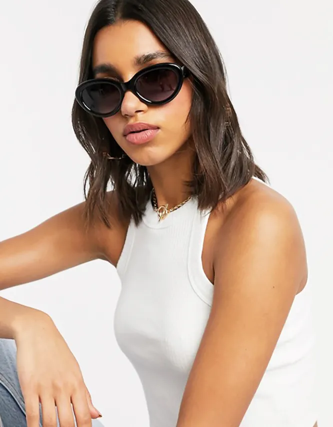 Еще один тренд лета — очки овальной формы. Такая модель добавит в твой повседневный образ нотку романтики, а также сделает черты лица более мягкими и плавными. Оправа не должны быть слишком узкой или, наоборот, широкой — ориентируйся на средние размеры.