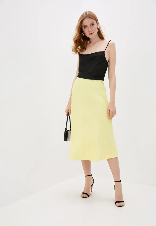 Классика вечера — атласная юбка миди лаконичного кроя. Обрати внимание на модели ярких цветов — нам особенно пришелся по вкусу вариант приглушенного желтого оттенка. Наиболее гармонично такая юбка будет смотреться в паре с элегантным топом и обувью на среднем каблуке — идеальный образ для ужина в ресторане, похода в театр или на модную выставку.