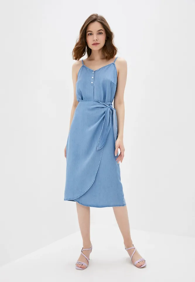 Эта модель сочетает в себе сразу два тренда: деним и запах. Главный плюс юбки такого кроя в том, что она заметно преображает фигуру: высокая посадка позволяет подчеркнуть талию, комфортная длина дарит чувство уверенности, асимметрия зрительно вытягивает силуэт, а завязка на поясе придает наряду особый шарм. Бери на заметку!
