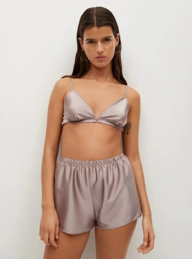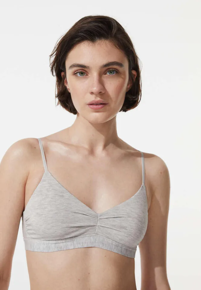 Бюстгальтер с треугольным вырезом без наполнителя и косточек для максимального удобства. Выполнен из мягкого модала, который приятно прилегает телу и хорошо впитывает влагу.