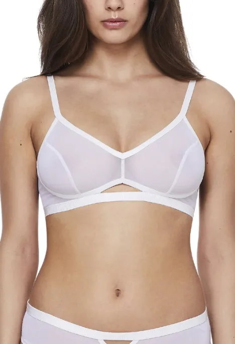 Бюстгальтер без косточек из тонкой мелкой сетки комфортно облегает грудь и позволяет коже дышать.